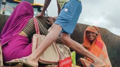 जेसीबी की बकेट से गर्भवती महिला ने पार किया बहता नाला, दूसरी ओर इंतज़ार कर रही थी एम्बुलेंस