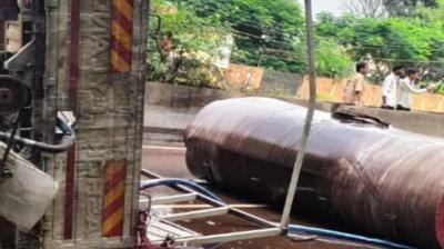 रायपुर-नागपुर हाईवे पर टैंकर हादसा, टायर फटने से पलटा केमिकल ट्रक