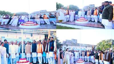 भाजपा के प्रदेश अध्यक्ष व सांसद श्री विष्णुदत्त शर्मा, क्षेत्रीय संगठन महामंत्री श्री अजय जामवाल एवं प्रदेश संगठन महामंत्री श्री हितानंद जी ने प्रदेश कार्यालय में किया ध्वजारोहण