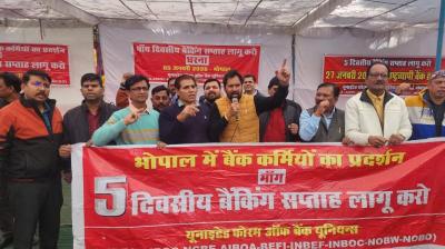 भोपाल में गरजे बैंक कर्मचारी, पाँच दिवसीय बैंकिंग सप्ताह लागू करने की मांग तेज
