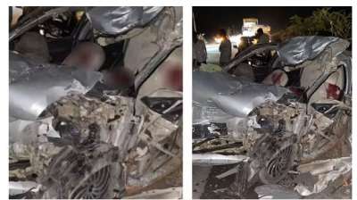 शादी की खुशियां मातम में बदली, खड़े डंपर में घुसी कार, दो की मौत; सात जख्मी