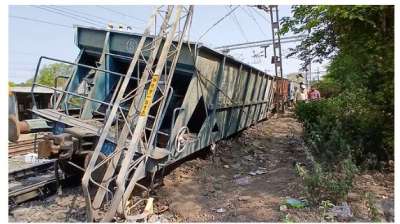 खंडवा में रेल हादसा, मालगाड़ी के पांच डब्बे बेपटरी हुए, बिजली के खंभे से टकराने के बाद रुके