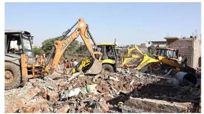 अवैैध काॅलोनी मेें बगैर नक्शा पास कराए बन रहे दस से ज्यादा निर्माणों पर चले बुलडोजर