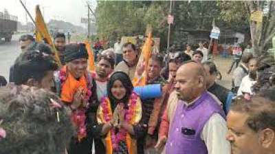 शबनम का सोनकच्छ पहुंचने पर स्वागत,वह मुस्लिम धर्म के साथ हिन्दू धर्म को भी मानती है