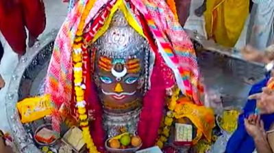 महाकालेश्वर मंदिर में अद्भुत नज़ारा, भस्म आरती के दौरान बाबा महाकाल मस्तक पर शिवलिंग धारण किए दिखे