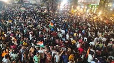 जश्न के बीच राजबाड़ा में भारी भीड़, पुलिस ने की कड़ी व्यवस्था
