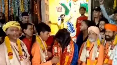 पैर पकड़कर पुजारियों से माफी मांगते नजर आया विधायक पुत्र, पहले थाने में सरेंडर, फिर फ़िल्मी स्टाइल में माफ़ी