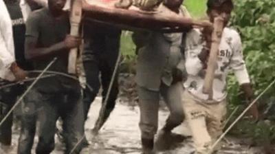 मैहर में बदहाल व्यवस्था: सड़क न होने के कारण एंबुलेंस नहीं पहुंची, ग्रामीणों ने खाट को बनाया स्ट्रेचर