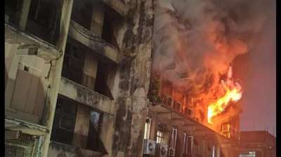 चार मंजिला इमारत में भीषण आग, दुकानों का सामान जलकर खाक