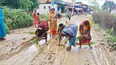 उमरिया में टूटी उम्मीदें, महिलाओं ने सड़क पर बोया धान, कहा- ‘यही है विकास’