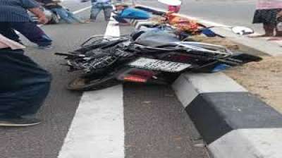 डिवाइडर से टकराई तेज रफ्तार बाइक, चाचा-भतीजी की मौके पर मौत, महिला गंभीर घायल