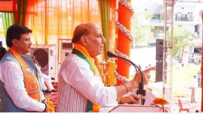 रक्षामंत्री राजनाथ सिंह का तंज, कहा- भाजपा 24 कैरेट सोना तो कांग्रेस जंग लगा लोहा