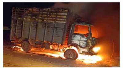 जबलपुर स्टेट हाईवे पर अनाज से भरे ट्रक में लगी आग, घटना से गुबरा गांव में मची अफरा-तफरी