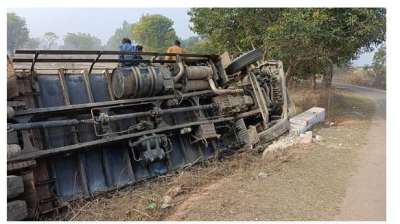 शहडोल में मवेशियों से लदा ट्रक पलटा, एक गाय की मौत, तस्करी की आशंका