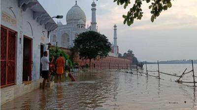 आगरा में रिकॉर्ड तोड़ बारिश और यमुना का उफान, ‘ताजमहल’ के नज़दीक तक पहुंचा पानी