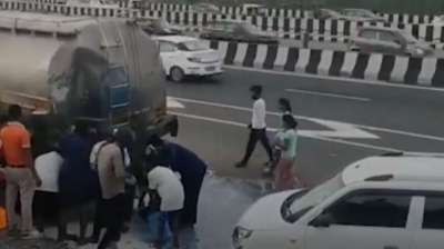 टैंकर-ट्रक की टक्कर के बाद मेरठ एक्सप्रेस वे पर दूध की लूट, ड्राइवर की लाश पड़ी रही