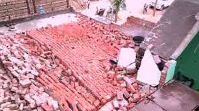 तेज आंधी से पड़ोस के घर में जा गिरी निर्माणाधीन दीवार