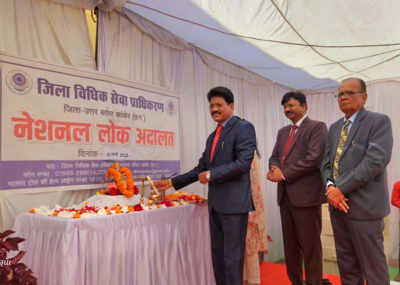 उत्तर बस्तर कांकेर : राष्ट्रीय विधिक सेवा प्राधिकरण द्वारा निर्धारित कार्यक्रम के तत्वावधान में जिला एवं सत्र न्यायालय कांकेर में प्रथम नेशनल लोक अदालत का आयोजन किया गया। प्रधान जिला एवं सत्र न्यायाधीश आनंद ध्रुव द्वारा नेशनल लोक अदालत का शुभारंभ किया।