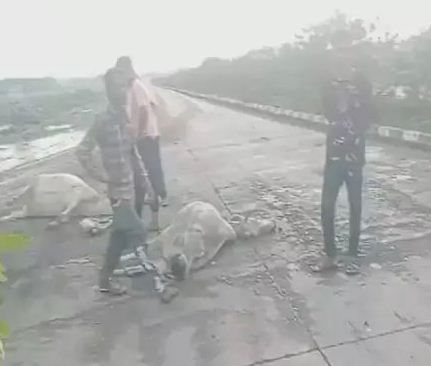 वाहन की चपेट में आने से 9 गायों की मौत...