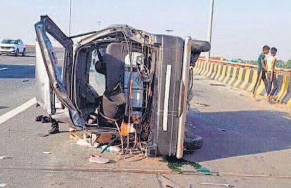 चलती गाड़ी का फटा टायर लोगों में हड़कम्प