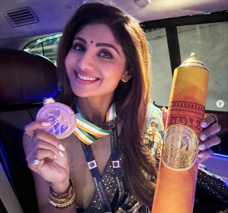 शिल्पा शेट्टी के लिए यह गर्व का क्षण है, उन्हें मंगलवार को महाराष्ट्र में चैंपियंस ऑफ चेंज अवार्ड से सम्मानित किया गया। अभिनेत्री ने आधिकारिक इंस्टाग्राम पर पुरस्कार की तस्वीरें और वीडियो भी साझा किया हैं। पहली तस्वीर में शिल्पा अपना मेडल और स्क्रॉल दिखा रही हैं, जिससे उन्हें सम्मानित किया गया। दूसरी तस्वीरों में वे हरे और क्रीम रंग की साड़ी पहने पोज देती नजर आ रही हैं। शिल्पा को महाराष्ट्र में जस्टिस केजी बालाकृष्णन और जस्टिस ज्ञान सुधा मिश्रा से विशेष पुरस्कार मिला है।