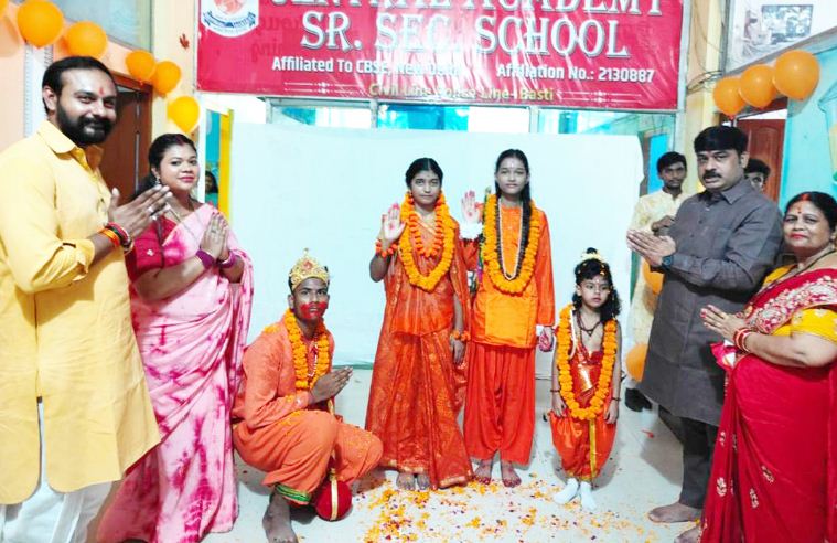 बस्ती । सेन्ट्रल एकेडमी में शारदीय नवरात्रि और विजयादशमी का पर्व गुरूवार को श्रद्धा और उल्लास से मनाया गया। छात्र-छात्राओं ने रामायण के पात्रों की भेष भूषा में रामलीला के प्रसंगों का रोचक मंचन किया।