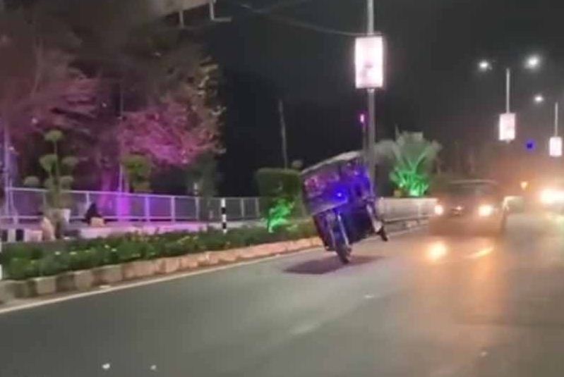 जीआईएस की सुरक्षा के बीच वीआईपी रोड पर ई-रिक्शा चालक का स्टंट