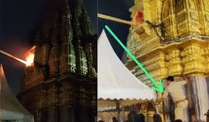 वाराणसी। वाराणसी के काशी विश्वनाथ मंदिर में मंगला आरती के दौरान परकोटे में शॉर्ट सर्किट से आग लग गई। मंदिर के गर्भगृह के पूर्वी गेट का ऊपरी हिस्सा जलने लगा, जिससे श्रद्धालुओं में अफरातफरी मच गई। सूचना मिलते ही मंदिर की सुरक्षा में तैनात पुलिसकर्मी मौके पर पहुंचे। उन्होंने आग बुझाने का प्रयास किया और वायरलेस से कंट्रोम रूम को सूचना दी। इसके बाद मंदिर परिसर की लाइट काट दी गई। मंदिर परिसर में तैनात फायर ब्रिगेड की टीम ने आग पर काबू पाया। आग लगने के चलते श्रद्धालुओं के दर्शन बंद करा दिए गए। 1 घंटे तक बाबा के दर्शन नहीं हो सके।