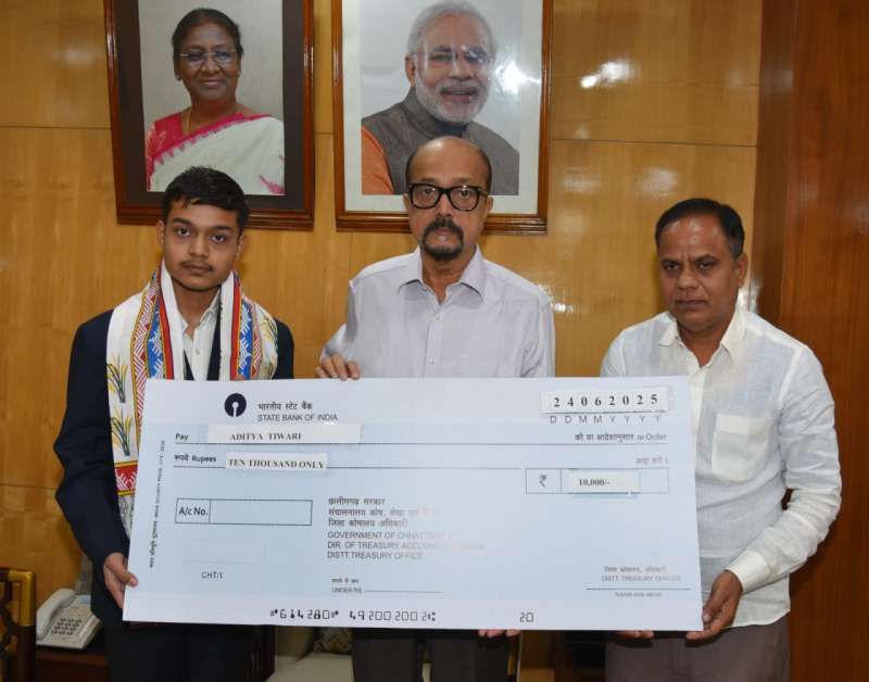 उल्लेखनीय है कि बेमेतरा जिले के ग्राम जमघट निवासी छात्र आदित्य ने इस वर्ष सीबीएसई 12 वीं बोर्ड की परीक्षा में 97.4 प्रतिशत अंकों के साथ उत्तीर्ण की है साथ ही जेईई मेन्स में 99 प्रतिशत और जेईई एडवान्स परीक्षा में अच्छी रेंक प्राप्त की है। इस अवसर पर छात्र के परिजन भी उपस्थित थे।