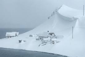 हजारों टन बर्फ में दबे कई घर