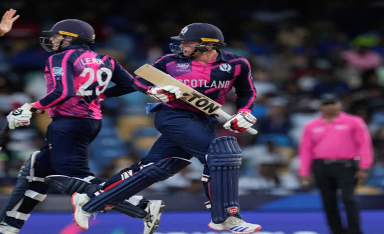 इंग्लैंड के खिलाफ बारिश के चलते मैच धुल जाने के बाद स्कॉटलैंड ने आईसीसी पुरुष टी20 विश्व कप के 12वें मैच में नामीबिया को पांच विकेट से हराकर ग्रुप बी में अंक तालिका में शीर्ष पर पहुंच गया। ऑलराउंडर माइकल लीस्क स्कॉटलैंड के लिए स्टार खिलाड़ी रहे। उन्होंने बल्ले और गेंद दोनों से शानदार प्रदर्शन किया।