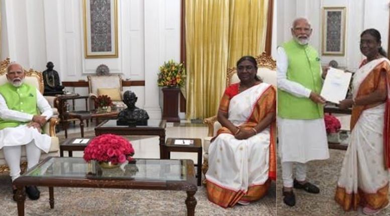 प्रधानमंत्री नरेंद्र मोदी ने आज प्रधानमंत्री पद से इस्तीफा दे दिया। उन्होने आज राष्ट्रपति भवन जाकर द्रौपदी मुर्मु से मुलाकात की और अपना इस्तीफा पत्र उन्हें सौंपा। इससे पहले मोदी मंत्रिमंडल ने 17वीं लोकसभा भंग करने की सिफारिश कर दी थी।सूत्रों के मुताबिक, संभावना जताई जा रही है कि 8 जून को प्रधानमंत्री नरेंद्र मोदी तीसरी बार देश के प्रधानमंत्री पद की शपथ लेंगे।7 जून को एनडीए की बैठक में उन्हें गठबंधन के नेता चुने जाने की उम्मीद है। बता दें कि चुनाव नतीजों में भाजपा ने 240 सीटों पर जीत हासिल की है। वहीं, कांग्रेस ने 99 सीटें जीती है।