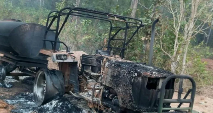 नक्सलियों ने टैंकर, मशीन और ट्रैक्टर वाहनों को किया आग के हवाले