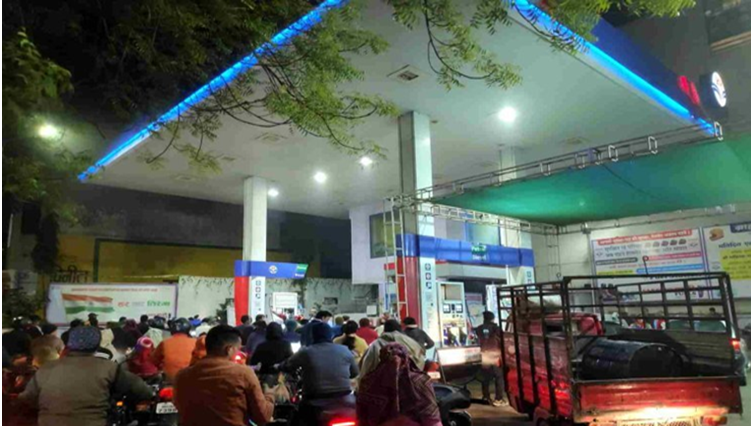 ट्रक चालकों की हड़ताल से पेट्रोल पंप पर लोगों की लगी कतार