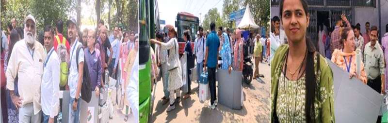 पोलिंग पार्टी ईवीएम लेकर डीटीसी बस व ई-रिक्शा से मतदान केंद्र की रवाना होने लगे हैं। शाम तक सभी मतदान केंद्रों पर पोलिंग पार्टी पहुंच जाएगी। ताकि सुबह निर्धारित समय से मतदान शुरू हो सके।