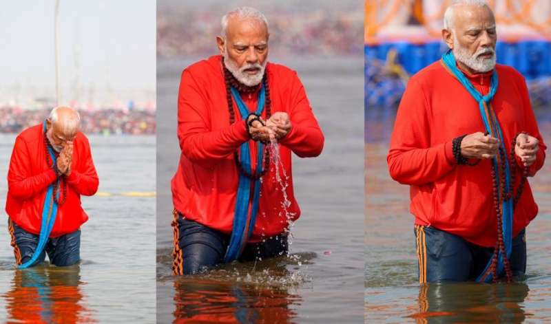 प्रधानमंत्री नरेन्द्र मोदी ने संगम में डुबकी लगाई