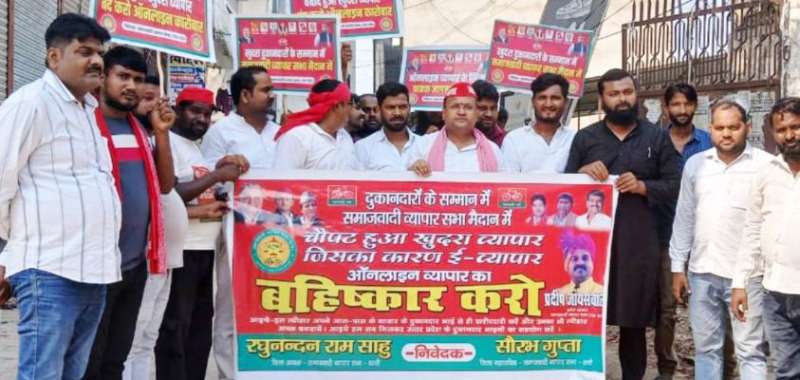 ऑनलाइन व्यापार के खिलाफ समाजवादी व्यापार सभा ने निकाली जागरूकता पद यात्रा