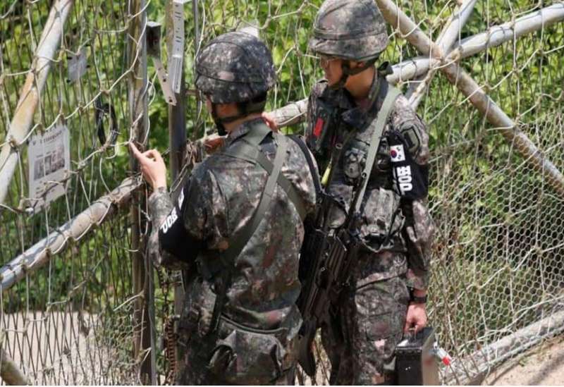 दक्षिण कोरिया के सैनिकों की तरफ से सीमा पार करने पर चेतावनी देते हुए की फायरिंग