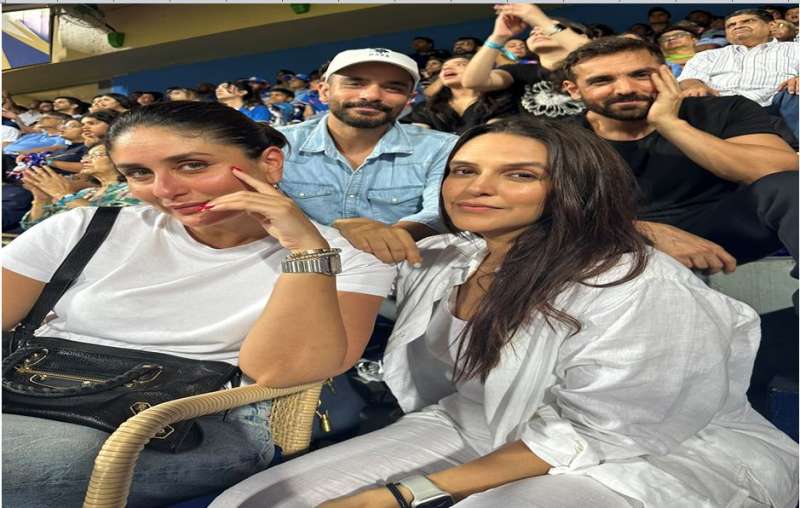 पूर्व भारतीय क्रिकेटर बिशन सिंह बेदी की बहू और अंगद बेदी की पत्नी नेहा धूपिया को वानखेड़े के मैदान पर स्पॉट किया गया। नेहा की तस्वीरें वायरल हो रही है, जिसमें वह करीना के साथ बैठकर टीम को सपोर्ट कर रही हैं।