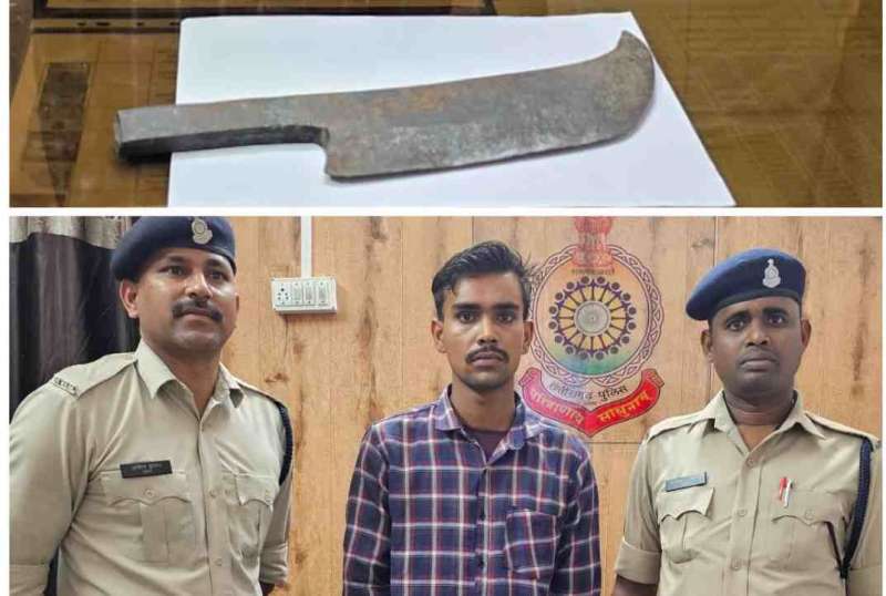 बिलासपुर । इंजीनियरिंग कॉलेज में चापड़ लेकर छात्र-छात्राओं को डराने धमकाने वाले युवक को पुलिस ने गिरफ़्तार किया है। आरोपी के कब्जे से धारदार चापड को जप्त कर धारा 25, 27 आम्र्स एक्ट के तहत जुर्म दर्ज किया गया है। मामले का विवरण इस प्रकार है कि मंगलवार को टेलीफोन से कोनी पुलिस को सूचना मिली कि इंजीनियरींग कॉलेज कोनी के क्लास रूम के सामने एक युवक धारदार चापड लेकर छात्र छात्राओं को डरा धमका रहा है और जान से मारने की धमकी दे रहा है। जिसे तत्काल कोनी पुलिस एवम स्टाफ द्वारा रेड कार्यवाही कर मौके पर आरोपी को पकडा और आरोपी के कब्जे से एक धारदार चापड को जप्त किया। आरोपी सृजन मिश्रा के विरुद्ध आम्र्स एक्ट की धारा 25, 27 के तहत कार्यवाही कर गिरफ्तार कर न्यायिक रिमाण्ड पर भेजा गया है।