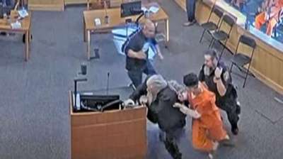 न्यू मेक्सिको में हत्या के एक संदिग्ध पर कथित तौर पर पीड़ित के चाचा और सौतेले पिता ने कोर्ट में हमला किया, ये पूरी घटना कोर्टरूम के वीडियो में कैद...
