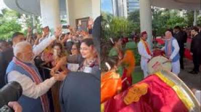 सिंगापुर में पीएम मोदी का जोरदार स्वागत......महिला ने बांधी राखी