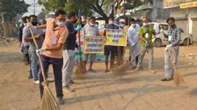 रेलवे स्टेशन सफाई अभियान चलाकर दिया स्वच्छता का संदेश