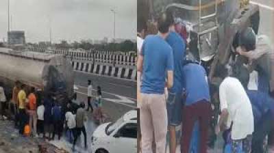 मेरठ एक्सप्रेस वे पर टैंकर-ट्रक की टक्कर पड़ी रही ड्राइवर की लाश और दूध लूटते रहे लोग