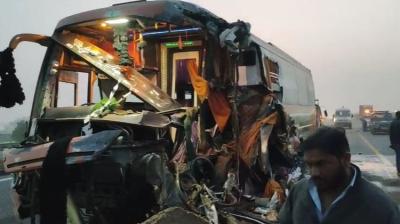 हाईवे पर दर्दनाक हादसा, बस-डंपर की टक्कर में 1 की मौत