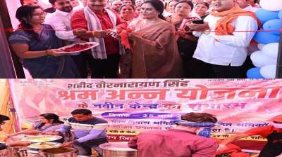 श्रमिकों के लिए तीसरे श्रमिक अन्न केंद्र का उद्घाटन, विधायक-महापौर ने श्रमिकों के साथ खाया खाना, थाली मात्र 5 रुपए म होगी उपलब्ध