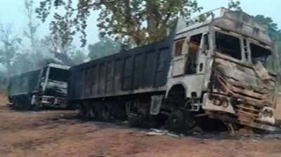 नक्सलियों ने लौह अयस्क से भरे ट्रकों को लगाई आग